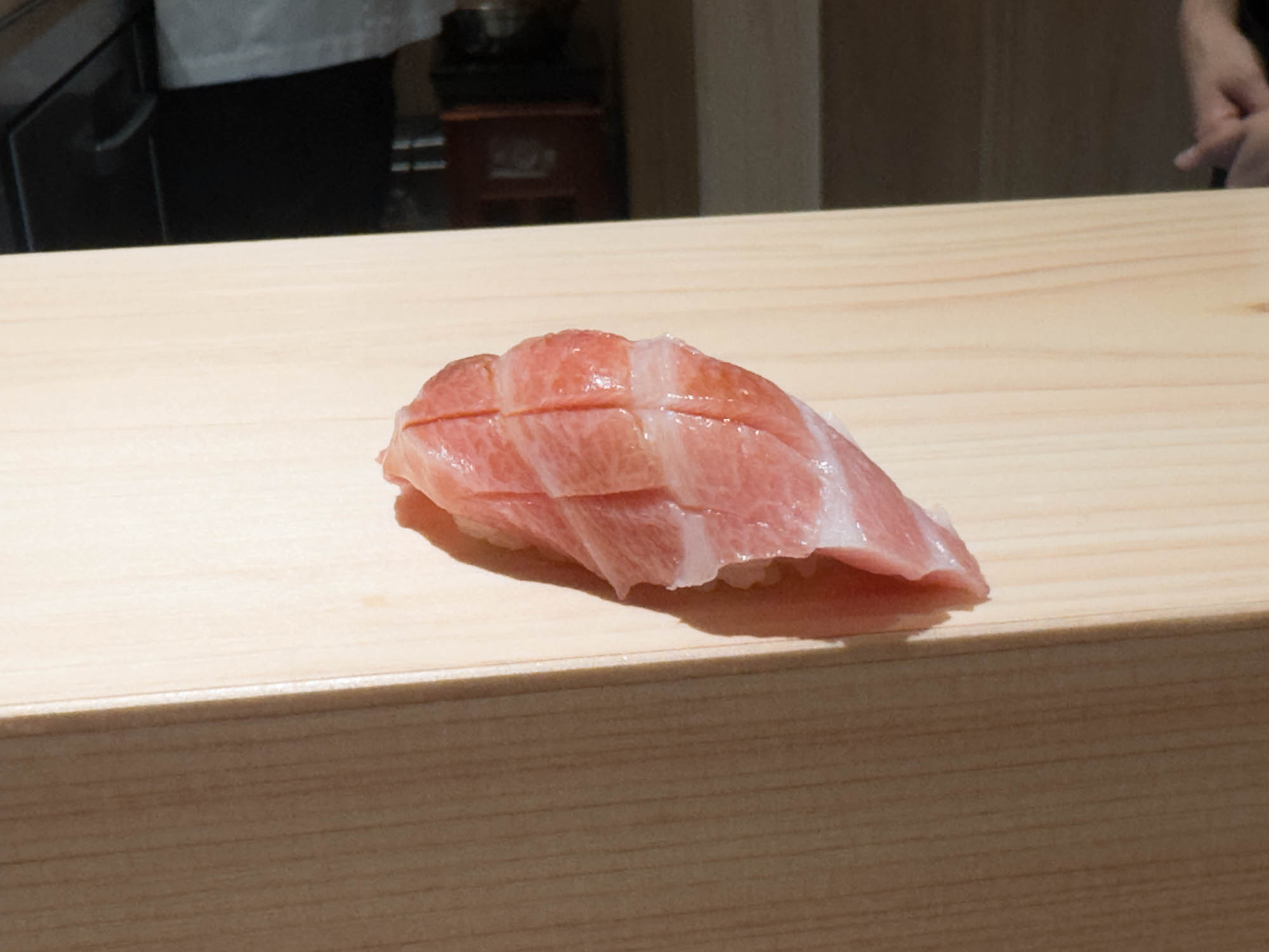 シャリは、最近は赤酢がしっかり効いた店が多いのに真っ白。海老やイカではあまり感じなかった酸味が中トロではしっかり効いて、魔法のようです。でも紹介サイトによると明かずだそう。